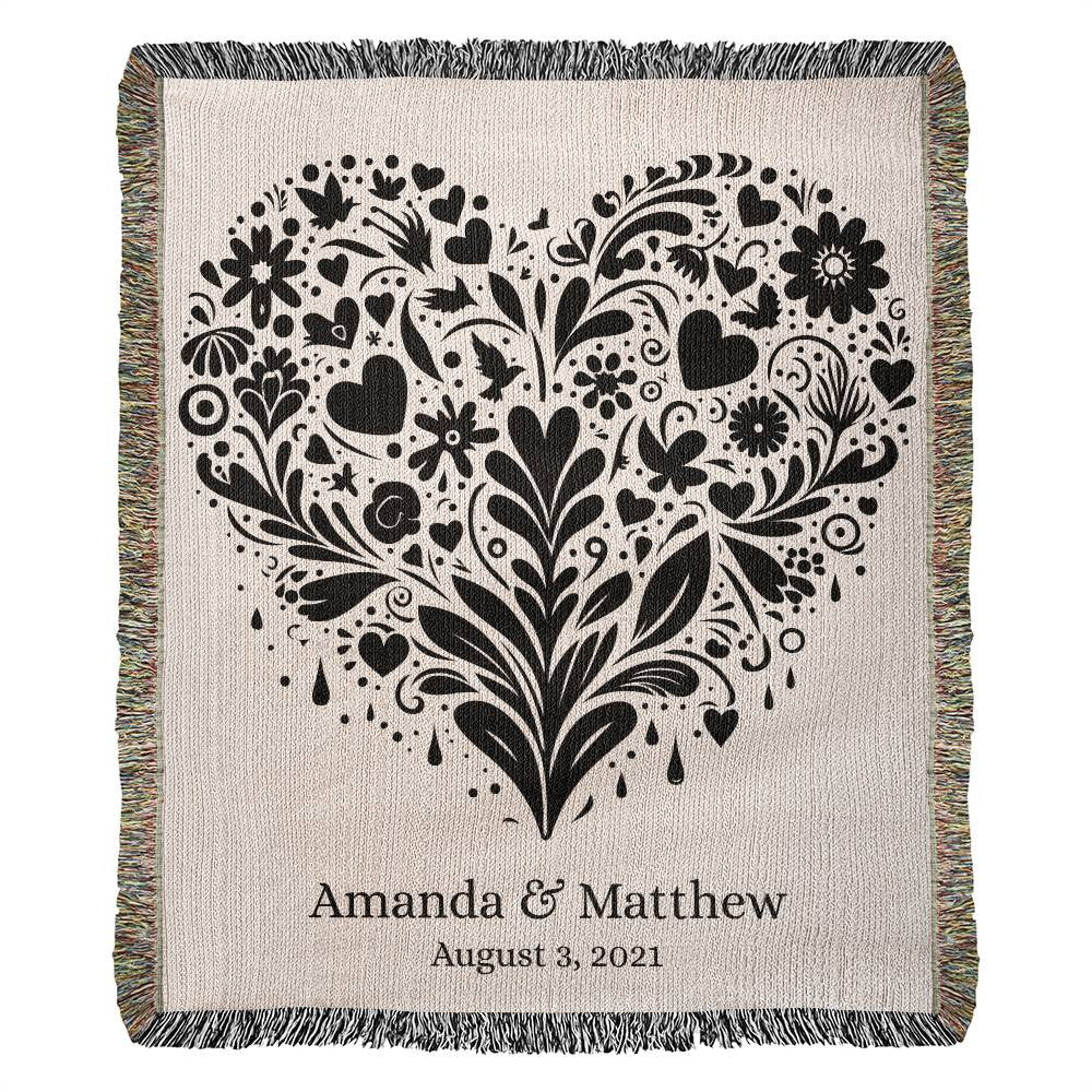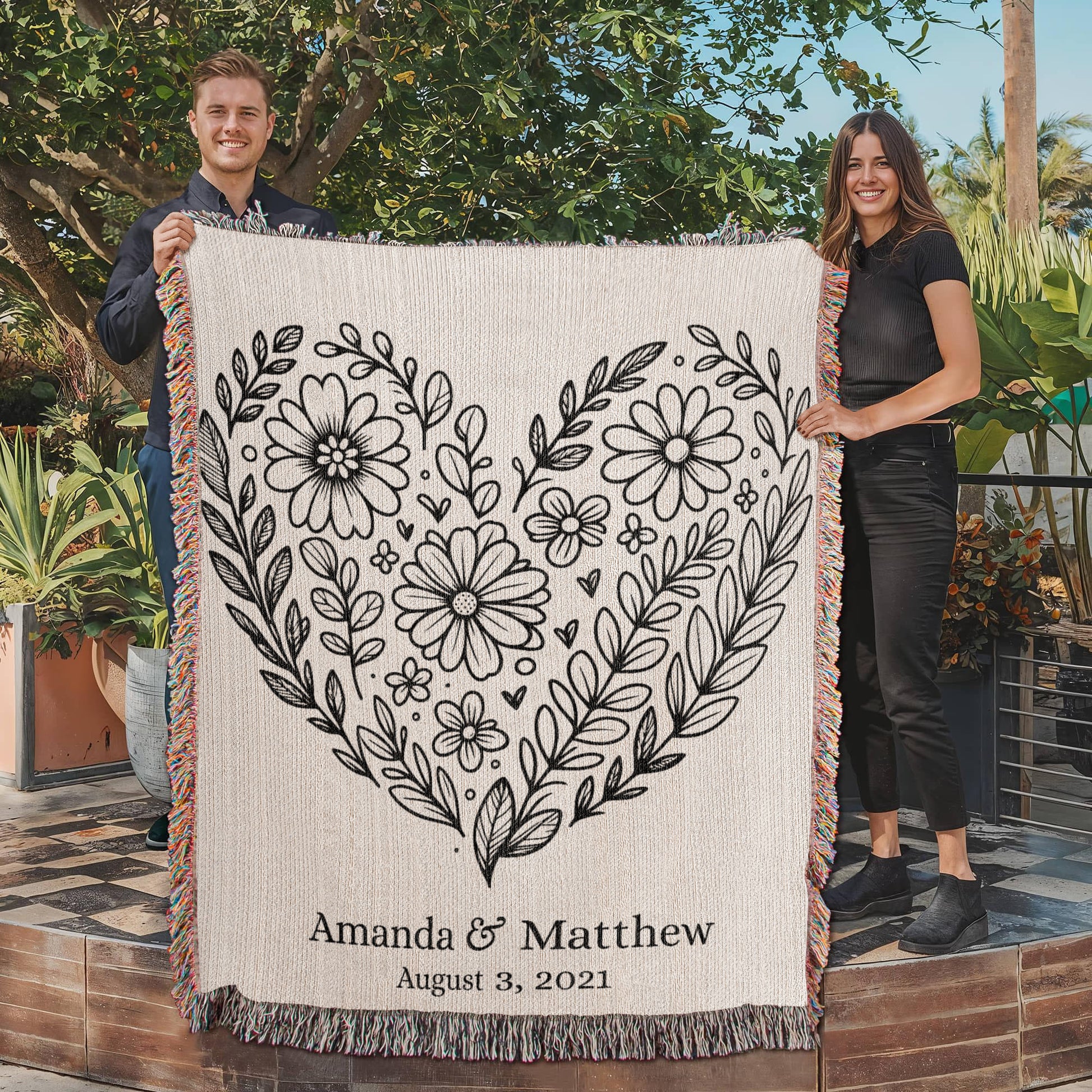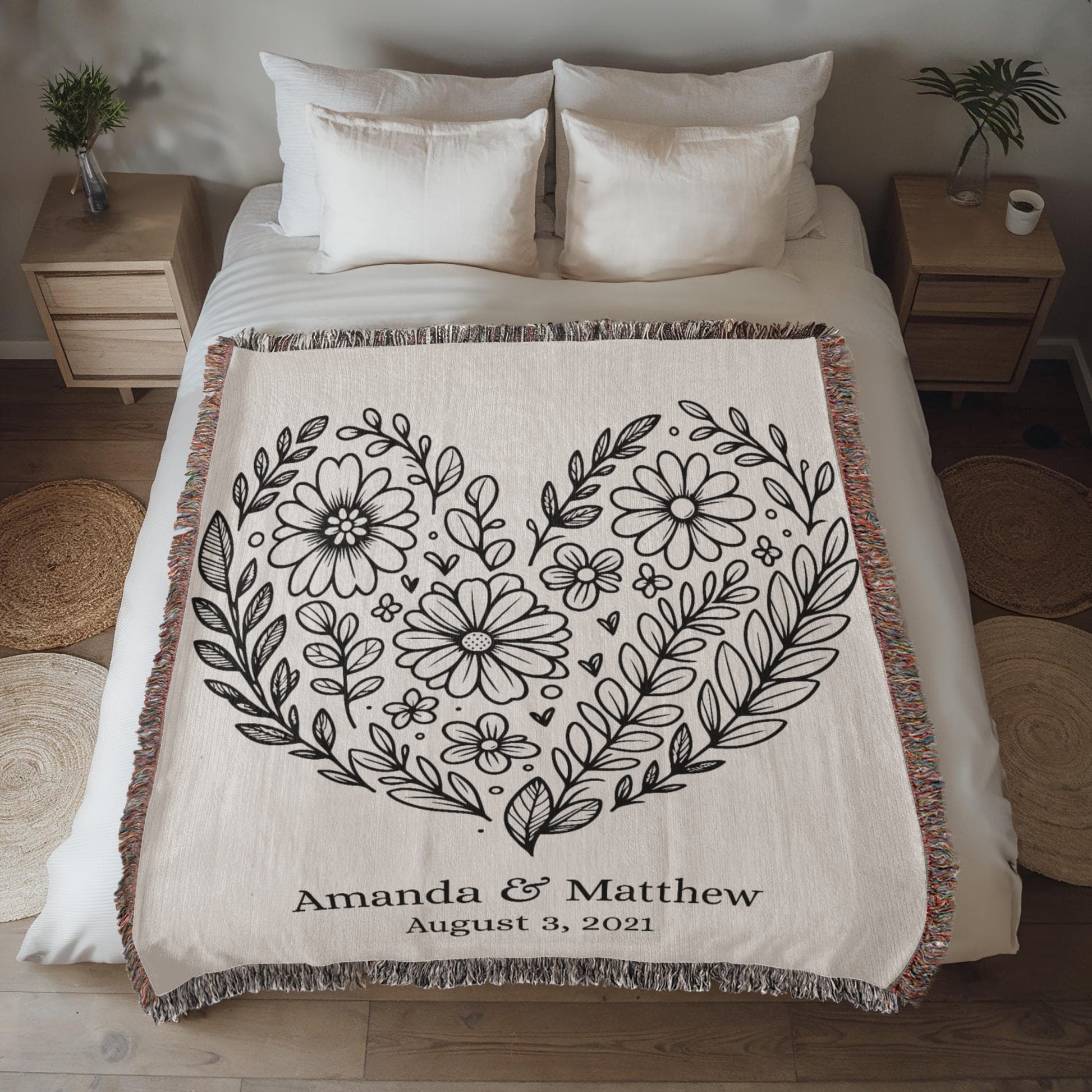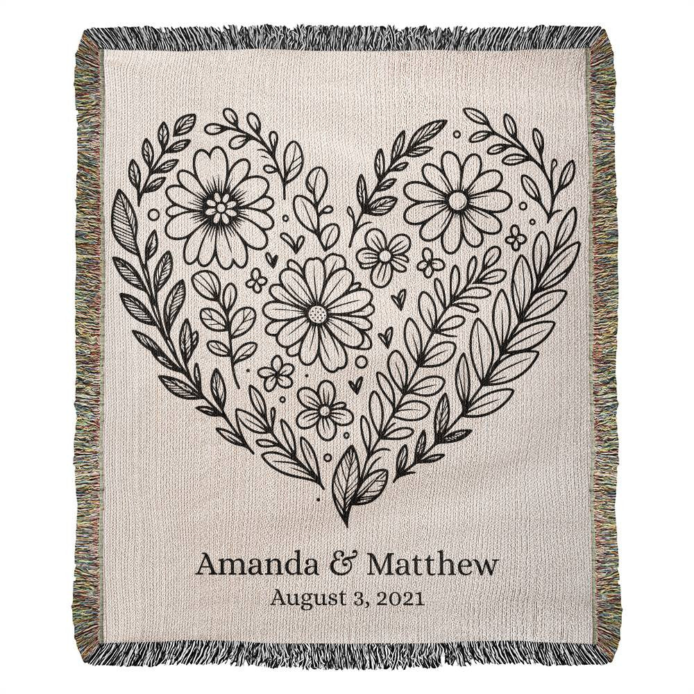 Personalized Floral Heart Woven Blanket – A Timeless Keepsake