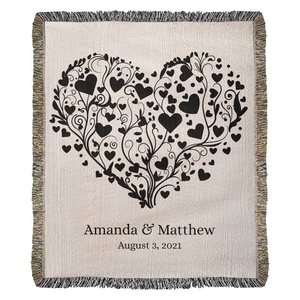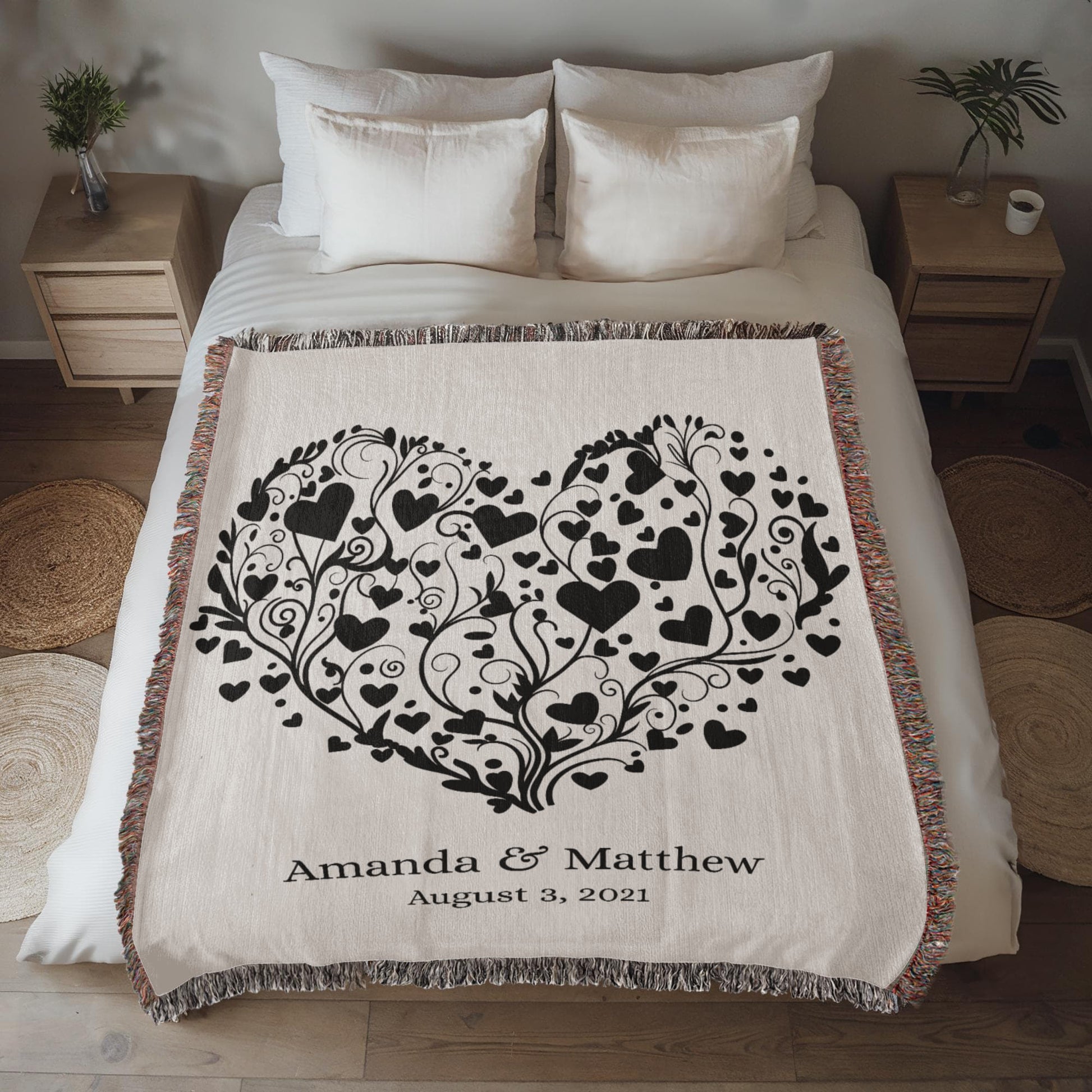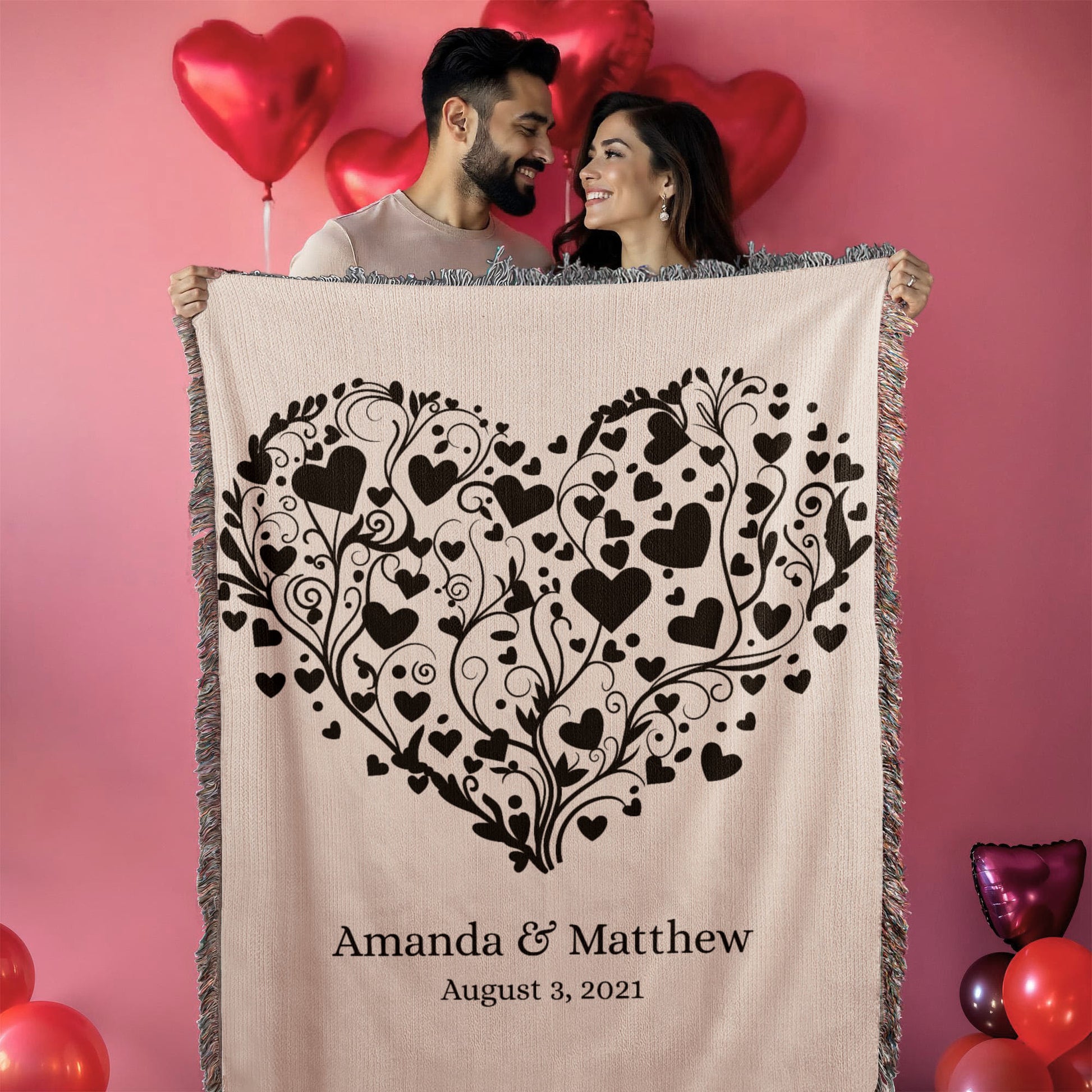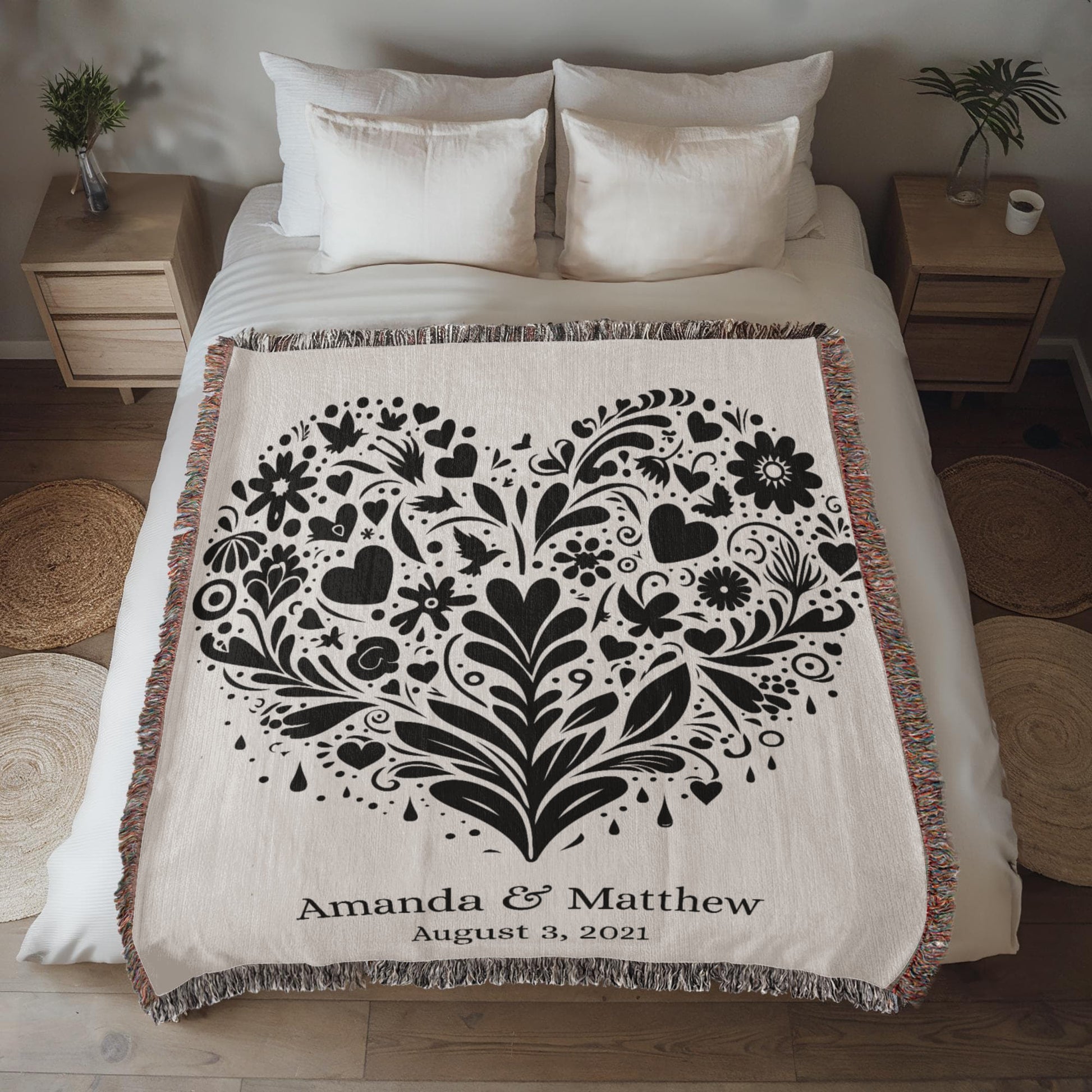 Personalized Floral Heart Woven Blanket – A Timeless Keepsake