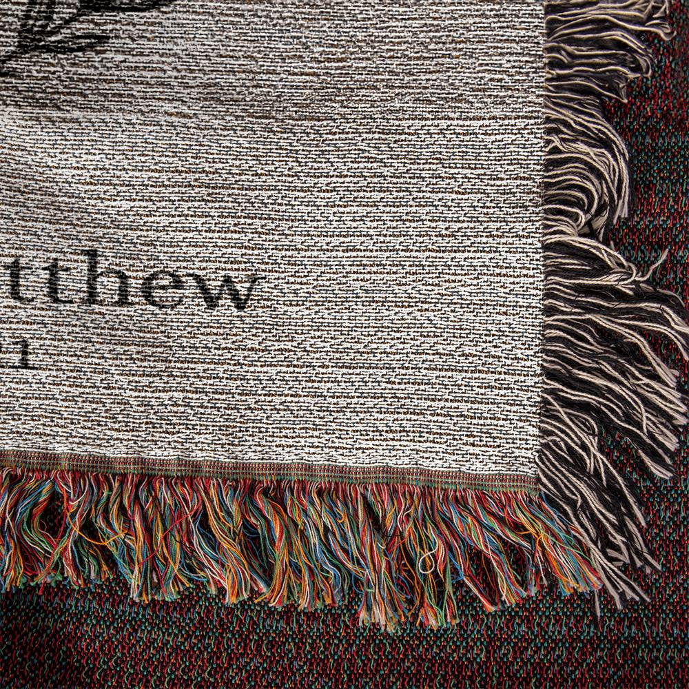 Expertly crafted on a loom using 100% premium cotton yarn, this elegant blanket features a beautifully woven heart design, personalized with names and a special date. Whether commemorating a wedding, anniversary, or a meaningful milestone, this luxurious keepsake is a heartfelt way to honor life’s most precious moments.